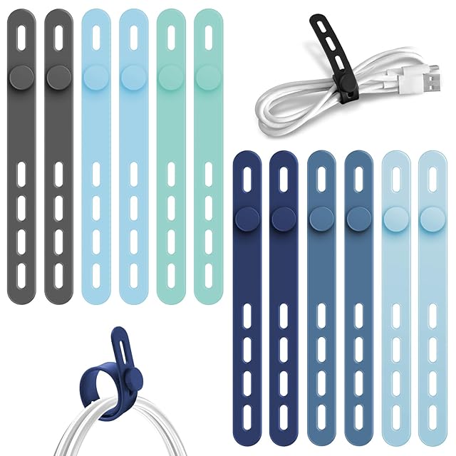 Lasocy ケーブルバンド アクアカラー コードバンド シリコン ケーブル まとめる 4穴調整 ケーブルクリップ 多機能 結束バンド 高耐久性 防水 繰り返し使える ドライヤー/ヘアアイロン/イヤホン コード 収納 12本入り