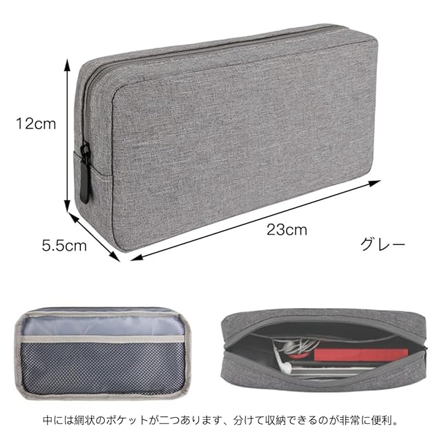 サムコス ガジェットポーチ メンズポーチ PC周辺 トラベルポーチ 小物入れ収納 大容量 多機能 収納 旅行 化粧 出張 ケーブル コード (グレー, 大きいサイズ)