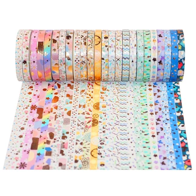 YUBBAEX マスキングテープ 金箔押し 5mm幅 x 24巻 薄いです プレゼント包装、DIY工芸品、ノートの装飾に使える (スポットブロンズ 5mm x 24巻)