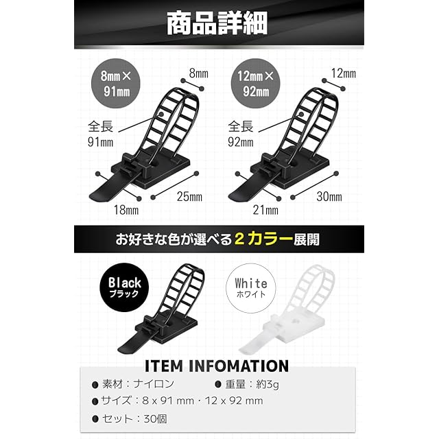 【商品詳細】素材:ナイロン重量:約3g/サイズ:8 x 91 mm・12 x 92 mm/セット:30個/