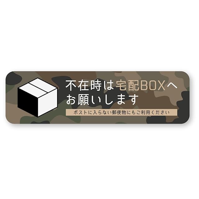 反射ステッカー工房 不在時は宅配BOXへお願いしますステッカー 横型 カモフラ (M) W150×H42.9mm 再帰反射タイプ 屋外耐候5年 ハードコート