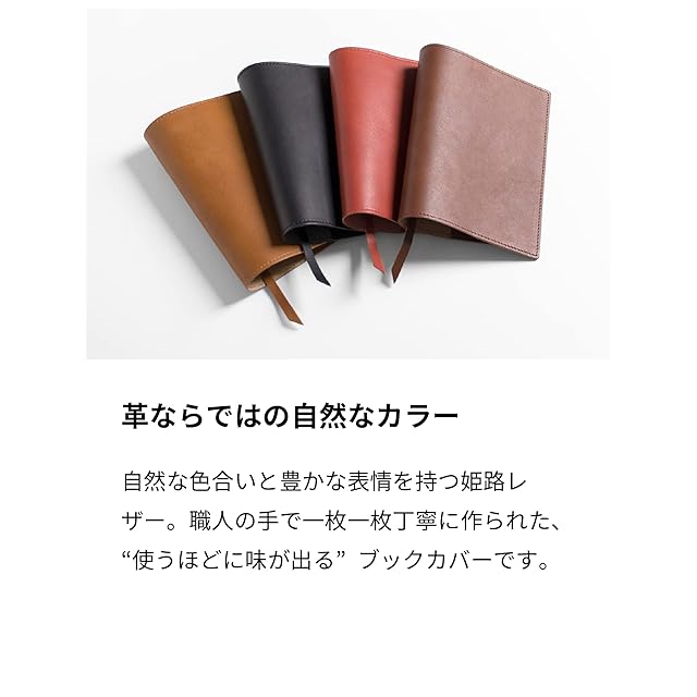 素材:牛革(姫路レザー) 本体サイズ:文庫本サイズ(広げた状態で約24.5x16.3 cm)※600ページまでの本に対応できることを想定しておりますが、紙の厚さ等により若干異なる場合がございます。 生産国:日本