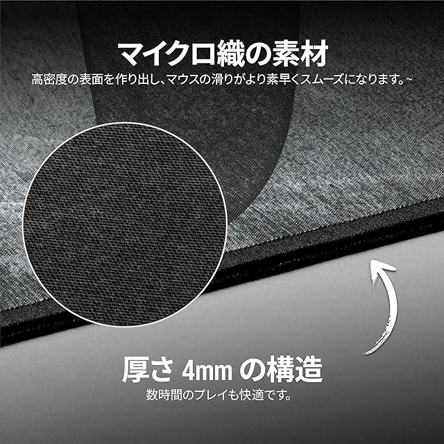 防滴、防汚コーティングにより、水滴や細かい汚れを弾く特殊なコーティングを施したゲーミングマウスパッド
