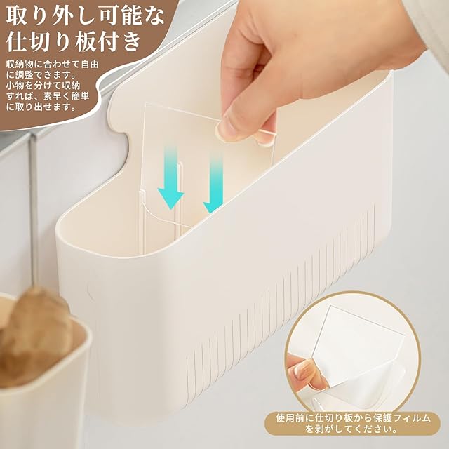 【省スペース、仕切り板付き】サイズは22×6.5×14.5cmで、2つのマグネットポケットが付いています。各マグネットポケットには取り外し可能な仕切り板が付いており、収納に合わせて自由に調整できます。収納物を分けて、素早く簡単に取り出せます。小物収納の究極の省スペースソリューション。 プレゼントにも最適です。
