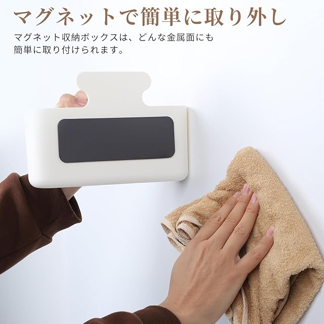 【マグネット収納】背面にマグネットが付属しており、穴あけ不要で取り付け簡単。マグネットで設置に手間がかかりません。汚れや傷を残さず取り外しできます。