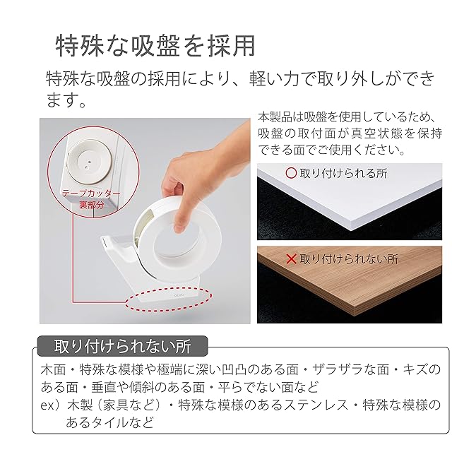 商品名:コクヨ テープカッター GLOO 吸盤 ハンディタイプ 大巻き 専用 白 本体サイズ:H133xW38xD149mm/164g T-GM500W