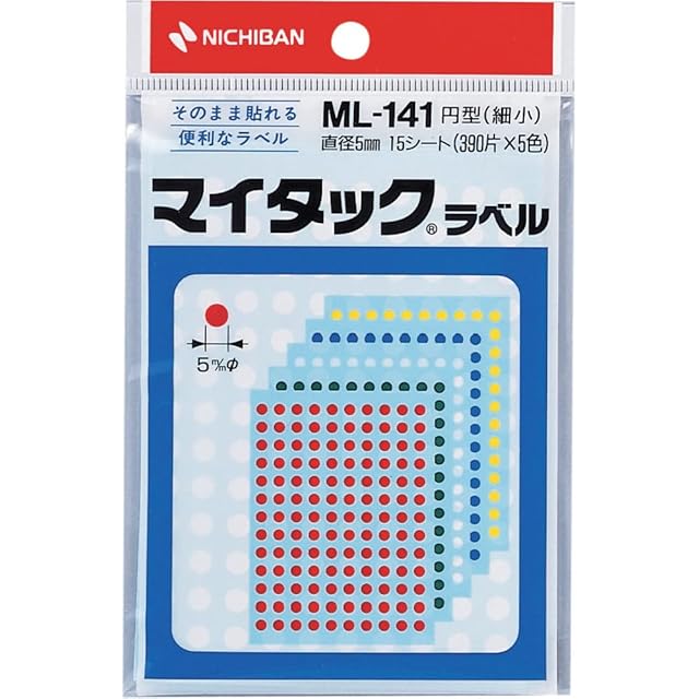 商品名:ニチバン マイタックラベル 直径5mm ML-141 混色
