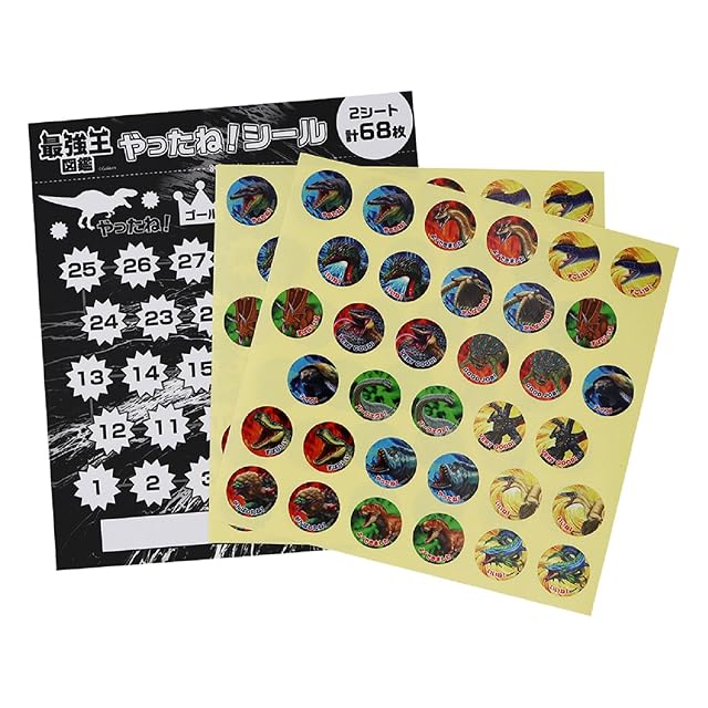 大人気シリーズ「最強王図鑑」のデザインのやったね!シール。34片×2シート、台紙付き