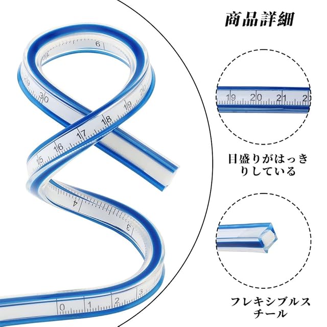 【読みやすい】私たちの曲線定規はさまざまな形にねじ曲げることができて、巻き上げて保管することができて、内蔵目盛りは正確で、傷をつけにくくて、両面で使用することができて、メートル法とイギリス製の2種類の計量方式があります。
