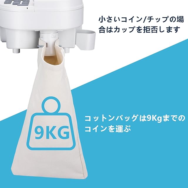 【簡単な操作方法】金額の設定は、ツマミを調整するだけで簡単に行えます。インターフェースは明瞭でシンプルです。付属のコインバッグには9キログラムの硬貨が収納できます。