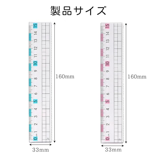1.製品内容:青、ピンクの2つの定規を含み、製品サイズ:160mm * 33mm * 2mm、製品重量:約7g/本