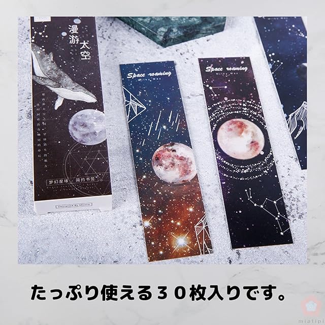 商品の特徴:miatipiの幻想的な宇宙のしおりは、大学で資料を沢山使用する学生の方、塾や学校の参考書が沢山ある中高生の方、図書館をよくお使いになる方のお供にも最適な幻想的なデザインとなっております。美しい色味とデザインが魅力的です。30枚セットですので、お友達と分けたり、楽譜をお使いになるお稽古事にも適しています。進級、進学やお誕生日、父の日、母の日など記念日のプレゼントに、年齢を問わず知的でおしゃれなギフトとなります。