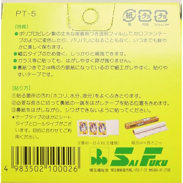 商品名:埼玉福祉会 SAIFUKU ピッチン 万能透明テープ 50mmX10m