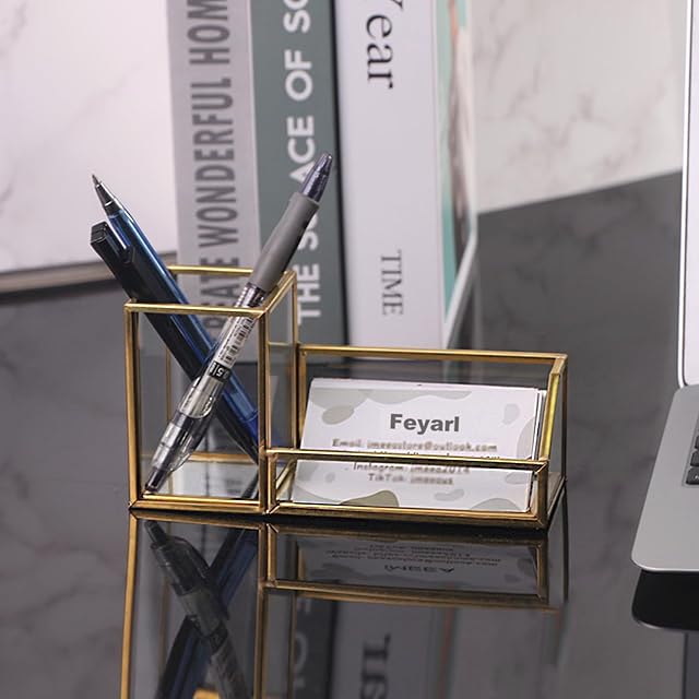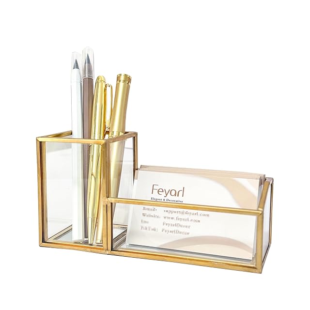 Feyarl ペン立て ペンスタンド ペンホルダー 名刺スタンド 名刺立て 小物入れ 卓上収納 事務用品 真鍮 オフィス ゴールド