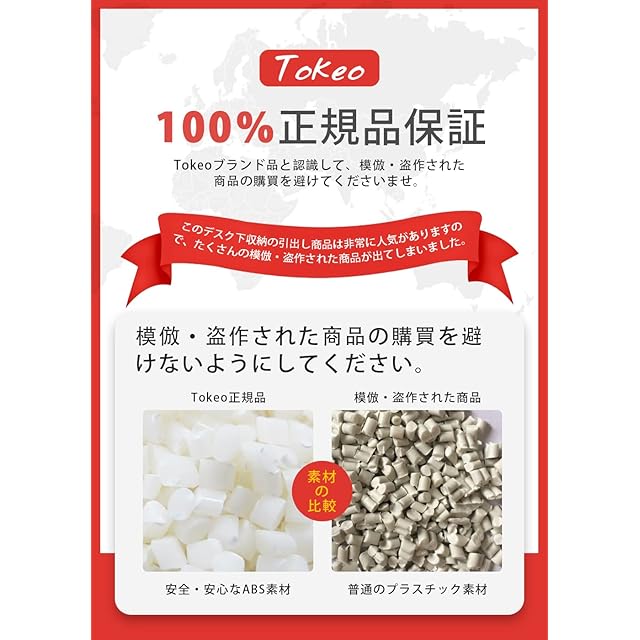 商品名:Tokeo 【2個セット】デスク下 収納ボックス 取り付けできる引き出し 便利 机下収納 小物整理 事務用品、文房具アクセサリー、リモコン、食器収納 両面テープ付き、強力なステッカー 簡単インストール(ブラック, 20cm*23.5cm*7.2cm)