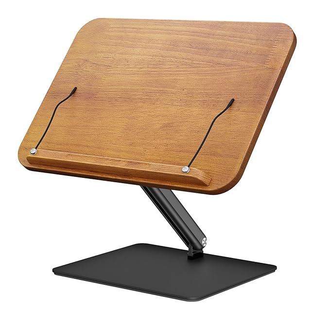 KUUVAN 書見台 ブックスタンド 木目調 天然木パネル 卓上 アルミ製 安定性抜群 角度/高さ無段階調整 加重ベース 折りたたみ 収納便利 滑り止め ナチュラル質感