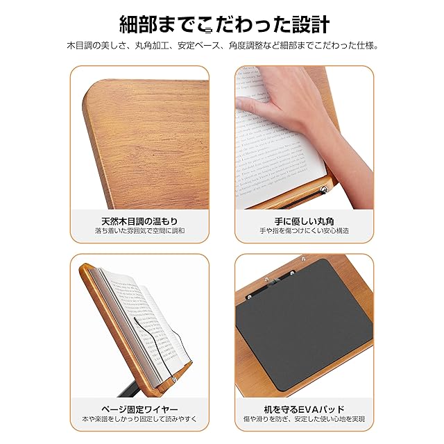 商品名:KUUVAN 書見台 ブックスタンド 木目調 天然木パネル 卓上 アルミ製 安定性抜群 角度/高さ無段階調整 加重ベース 折りたたみ 収納便利 滑り止め ナチュラル質感