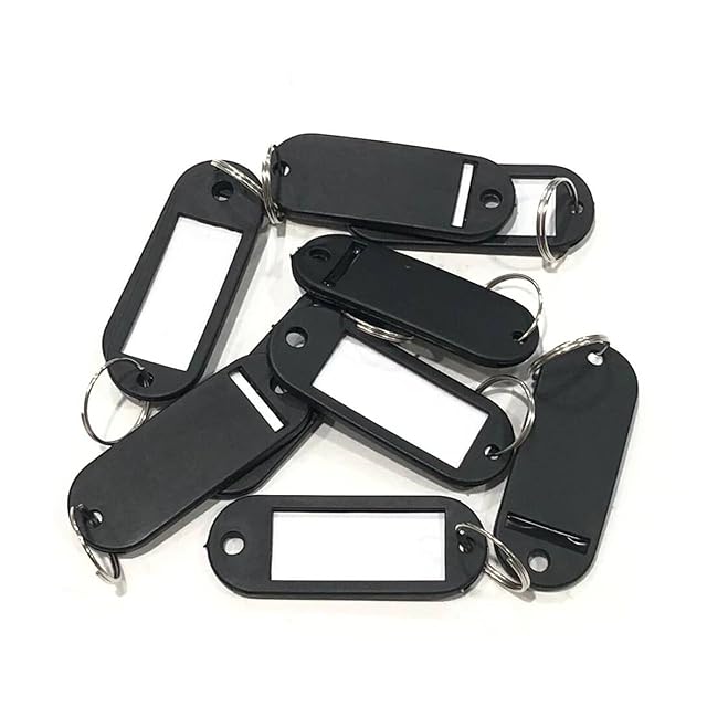 プラスチック製のキーホルダー付きタグになります。<br>空欄のネームカードに、ラベルや手書きで名前などを書けばオリジナルのキータグの完成です。鍵以外にも収納の分類や整理に役立つアイテムです。<br>サイズ:タグ/約 5.8cm × 2.2cm リング/約 1.8cm<br>イベント事やお出かけの際に、子供の荷物、ペット、カメラバッグやスーツケースなど様々な用途で使用可能。紛失防止につながります。<br>●製品内容 キータグ 黒20点セット ●期間 お届け日より1ヶ月