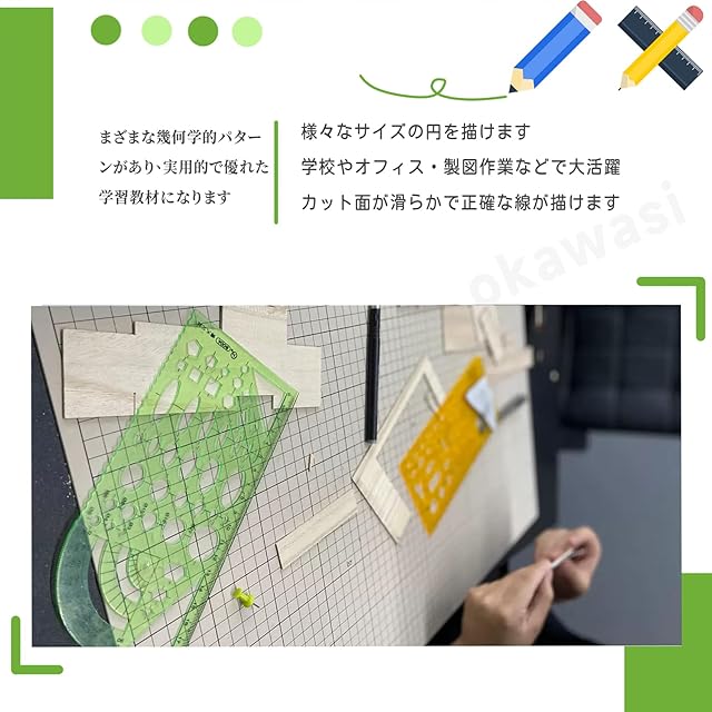 定規セット当社の製品は環境に優しい材料を使用しています、無毒無害です。水洗いが可能ですので、そのため、再利用することができます。実践的で優れた学習補助書です。