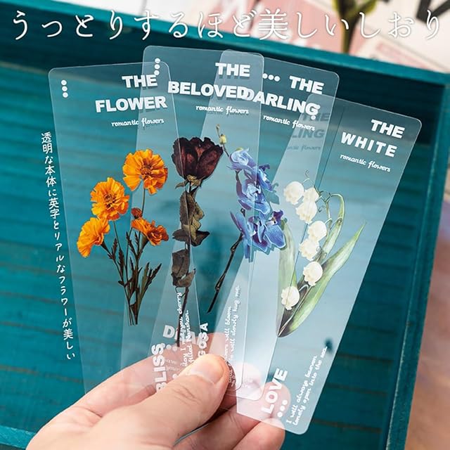綺麗なフラワーのクリアデザインしおりです。押し花のようで、見ているだけでも楽しい。読書がちょっと楽しくなるブックマークです。