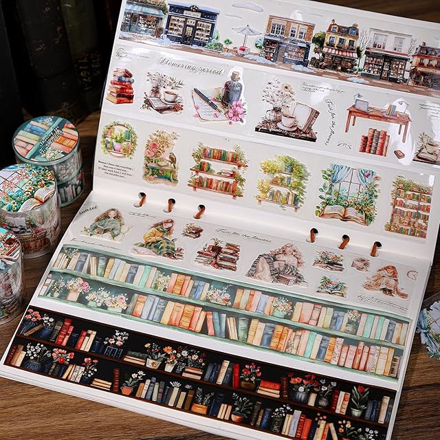 Alideco 6個 マスキングテープ かわいいロレトロ文学少女を読む 透明な耐水性 インク PET 粘着 テープ 広幅 DIY おしゃれ マステ シール (gongdushiguang)