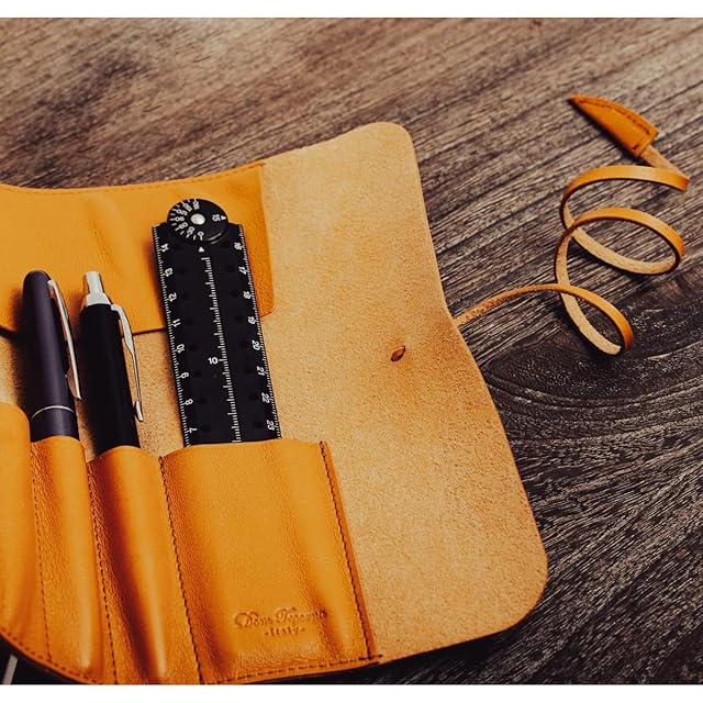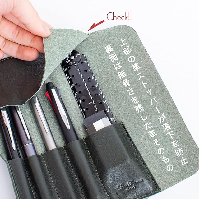 [Dom Teporna] ペンケース 本革 ロールペンケース イタリアンレザー メンズ レディース おしゃれ 筆箱 ロール 革 文房具 社会人 学生 グリーン