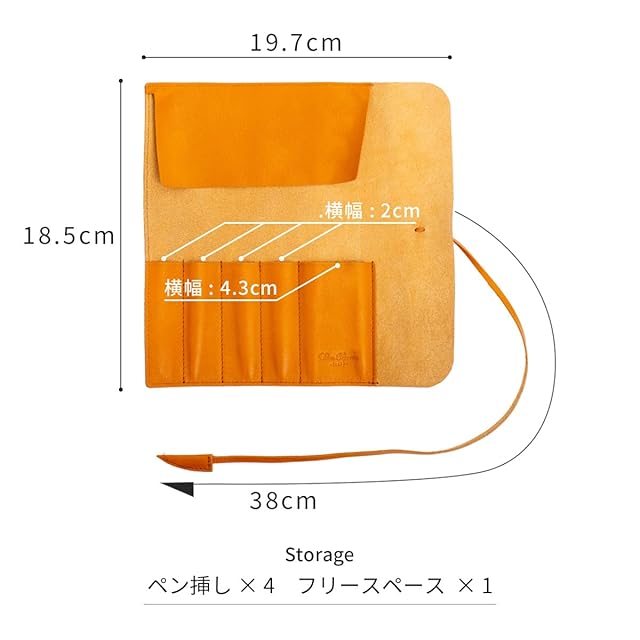 【スペック】 ・ペン挿し × 4 ・フリースペース × 1【サイズ】 ・縦 185mm × 横 197mm × 厚み 2mm ・重さ 22g【素材】 ・本革 イタリアンレザー