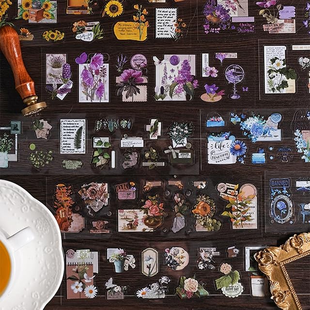 EZ PEACH コラージュ素材 シール フレーク 透明 箔押し 蝶々 花 キラキラ アクリル 防水ステッカー 詰め合わせ フレーク ステッカー フレーム 透かし彫り 背景紙 和風 おしゃれ 素材紙 紙もの パック シールシート 手帳デコ 付箋 飾り かわいい おしゃれ 日記デコレーション DIY (アイリス)