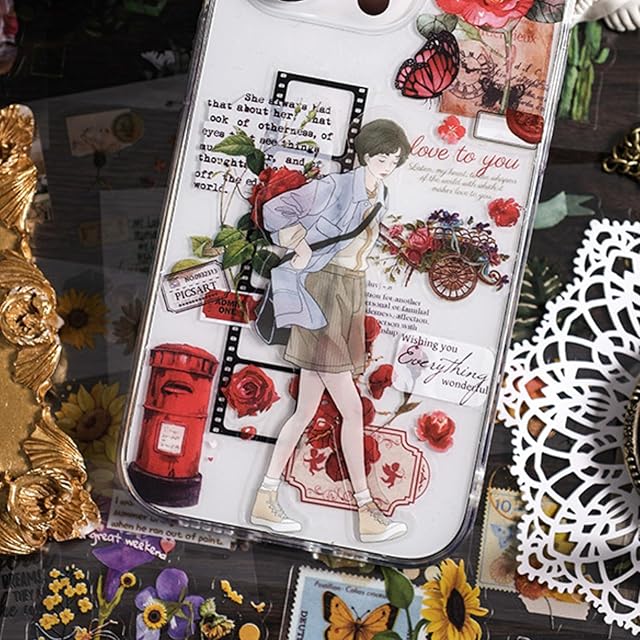 ♡【コラージュ 素材 - 多用途手帳】デコ、日記、メッセージカード、ラブレター、アルバム、ノートファイル、スマホ飾りにと、封筒、小袋やお手紙の封かんシールとして使ったり、贈り物、プレゼントのラッピング、手作り品や小物の包装、空箱などどこでもペタペタ貼れてとっても便利です。