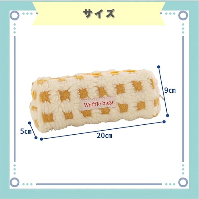 ideastore 筆箱 韓国 ペンケース かわいい シンプル おしゃれ 高校生 ワッフル柄 (イエロー)