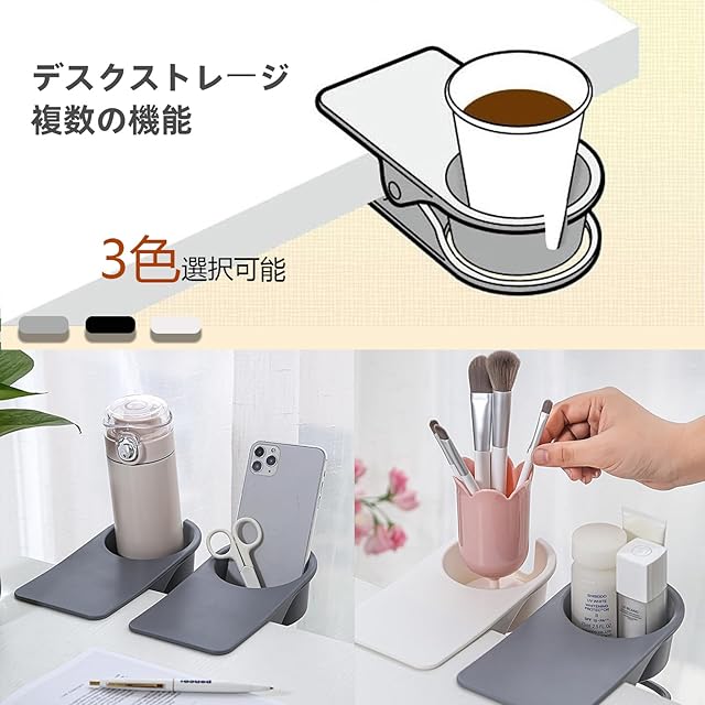 【飲み物を手元に安全固定&すっきり収納】デスクに取り付けて、カップやボトルを安定保持。うっかり倒す心配を減らし、作業や勉強に集中できます。机の端に固定することで、デスクスペースを有効活用。カップ以外にも、スマホ・筆記具・USBメモリなどの小物収納に便利。