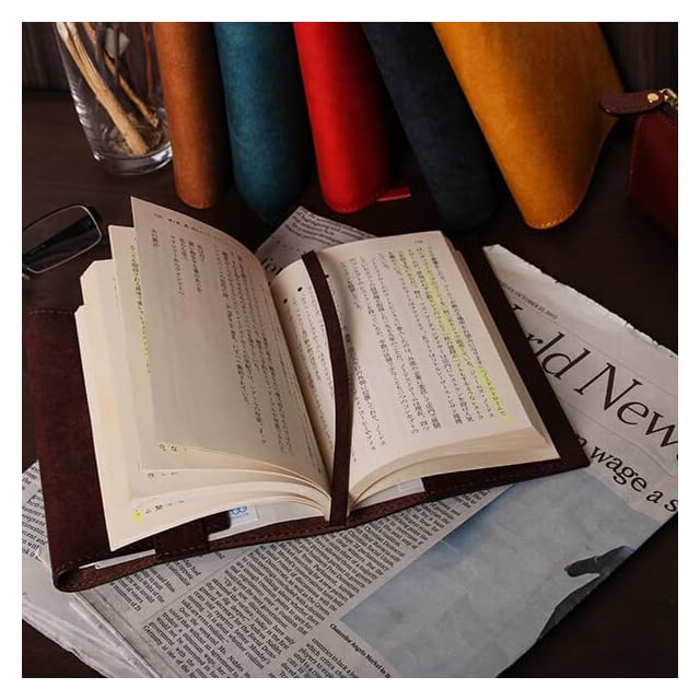 サイズ:高さ16.8 本のサイズ:高さ15.5×幅11×厚み約2cmが入る大きさ。ページがめくりやすいよう革のしなやかさが重要ですが、単に柔らかいだけでなく、最初の手触りが特徴的なプエブロレザーはブックカバーに最適です。