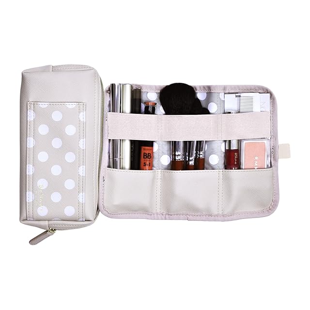 【その他】かわいいドット柄デザイン。シボ感のある合皮はリッチな素材感を演出しています。文具収納はもちろん、メイクグッズや工具、ガジェットケースなど幅広く便利にご利用頂けます。