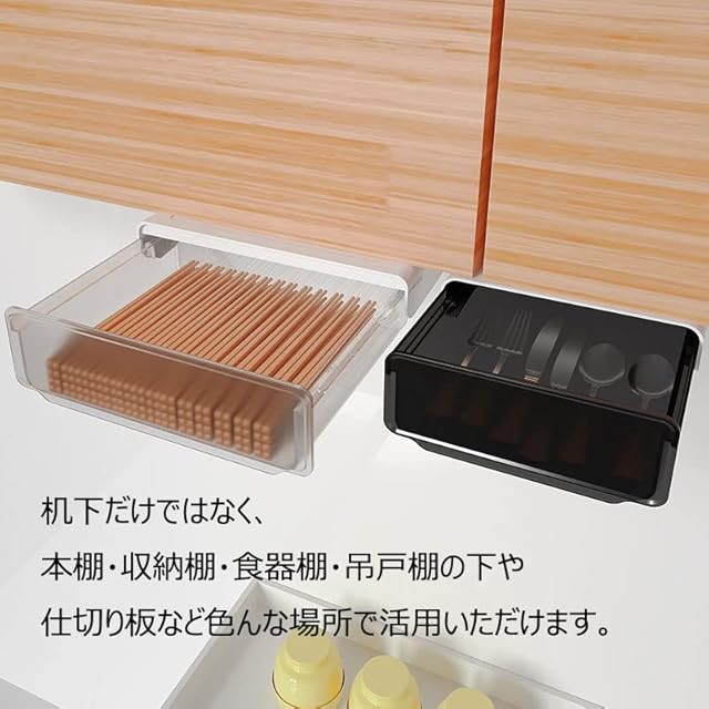 机 引き出し 後付け デスク トレー 収納 文房具 収納ボックス 後付け引き出し デスク下 文房具 便利 人気 デスクワゴン 書類棚 収納棚 食器棚 吊戸棚の下 リモコンラック コード 両面テープ 透明 リモコン テーブル下収納 収納ケース クリアボックス (クリア)