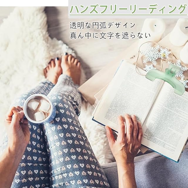 【透明な設計】緑色の透明素材で、厚くなり、耐久性があり、弧状のデザインで、本の内容を遮らず、読書体験を高めました。