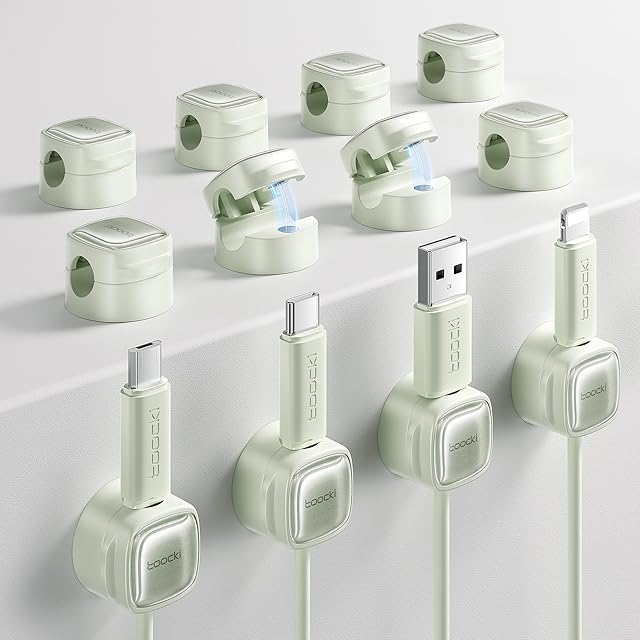 【ガウス磁石片手で簡単操作】Toockiのケーブルホルダーは、強力なガウス磁石を搭載。USBケーブルを入れると、1秒で自動的に磁気吸引し、片手で簡単に操作できます。ケーブルの保管が驚くほどスムーズで、手間いらずです。