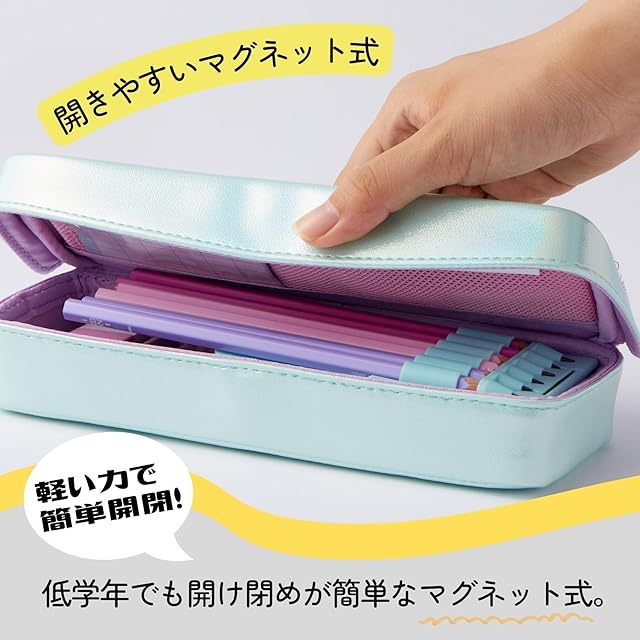 開け閉め簡単&大容量に収納、ピタッとすべりにくいマグネット軽量筆入れ。