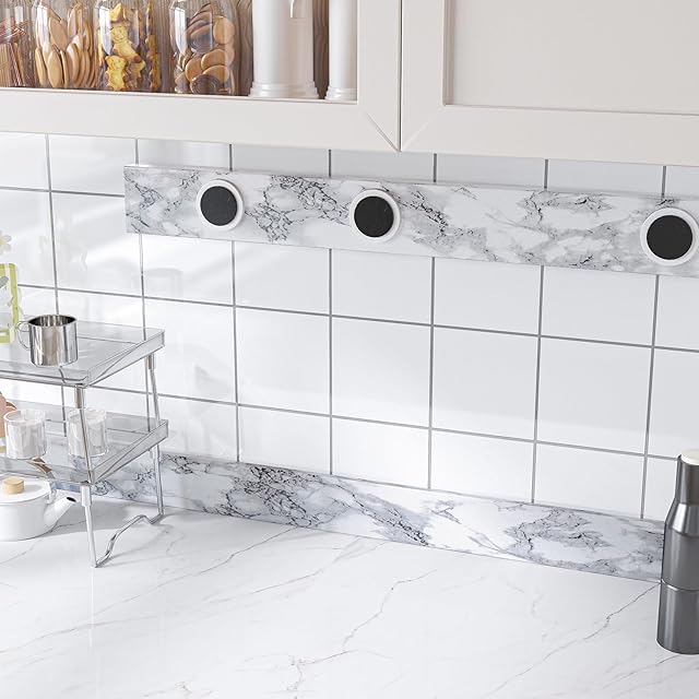 【高級感ある大理石調テープ】:VEELIKE マーブルテープは、白い背景に自然なグレーの大理石調模様が施され、高級感とエレガントな雰囲気を演出します。細かいテクスチャとリアルな大理石の質感が、空間の装飾性を大幅に向上させます