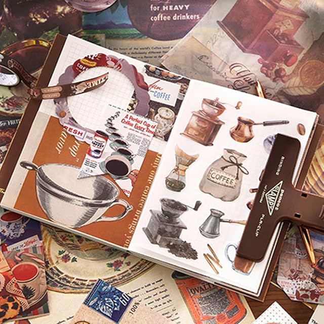 コラージュ ボックスセット, BetterJonny フレークシール コラージュ 素材 ジャンクジャーナル コラージュ ノート付き 素材紙 セット シール スクラップブック スーツ 大量 ステッカー ノート カレンダー スケジュール シール デザインペーパー 詰め合わせ スクラップブック用品、コーヒー市場