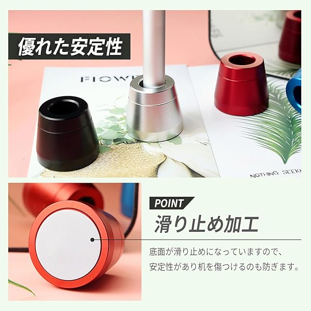 滑り止め加工:底面が滑り止めになっていますので、安定性があり机を傷つけるのも防ぎます。