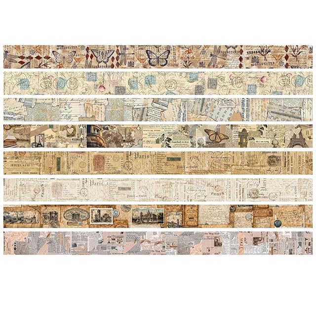 YUBX マスキングテープ 8個 セット 細いストリップ 和紙テープ レトロ ベースパターン DIYクラフト ジャーナル 手帳 プ ランナー スクラップブック ラッピング プレゼント装飾 (ジャンクジャーナル)