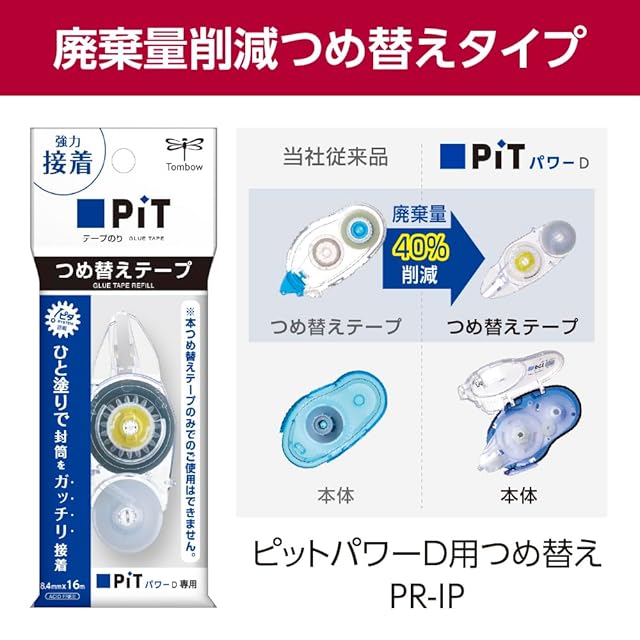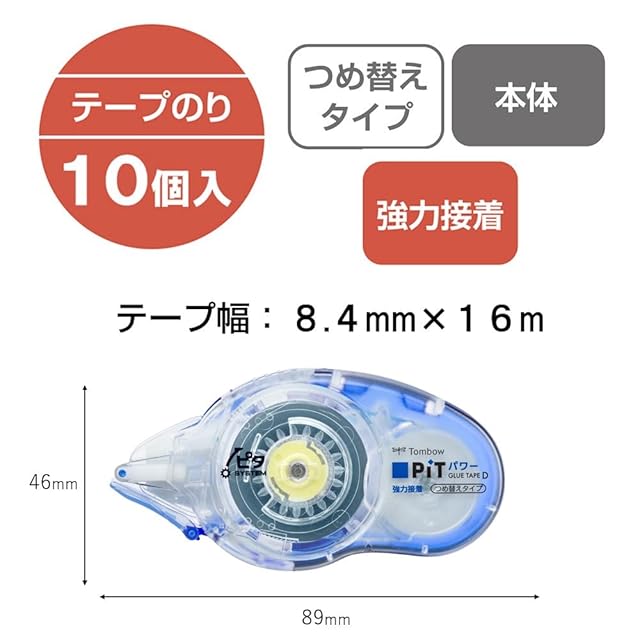 トンボ鉛筆 テープのり 強粘着 PiT パワーD 本体 (つめ替えタイプ) ひと塗りでガッチリ接着 8.4mm×16m 10個 PN-IP-10P