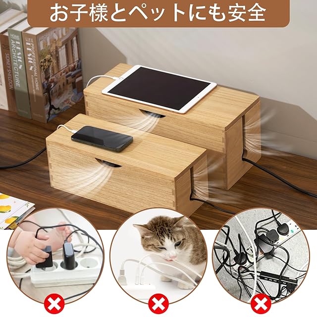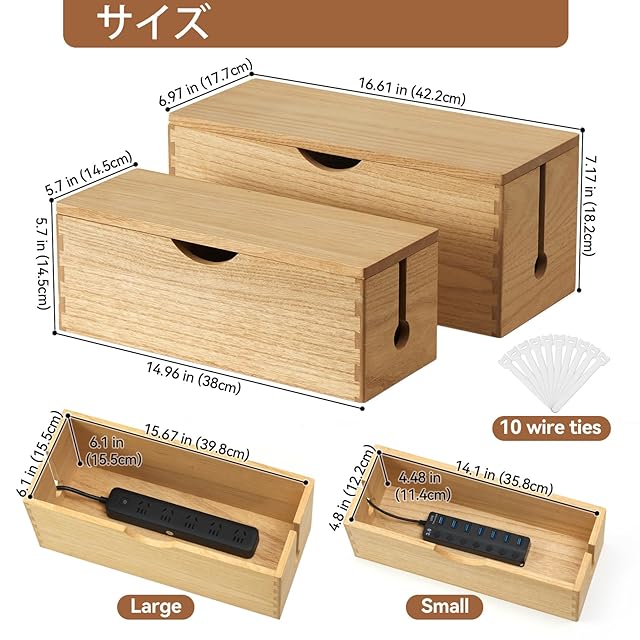 ★特徴2:【仕様】ケーブルボックスサイズ:(大)約幅42.2*奥形17.7*高18.2cm、(小)約幅38*奥形14.5*高14.5cm、品質表示:天然木桐材