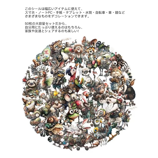 Oumino ステッカー シール 50枚 動物 おしゃれ 可愛い 人気 防水 マホケース ノートパソコン パソコン スノボ 荷物 スーツケース ギター 水筒 ススケボー カー 自転車 バイク ヘルメット 適用 プレゼント デコレーション