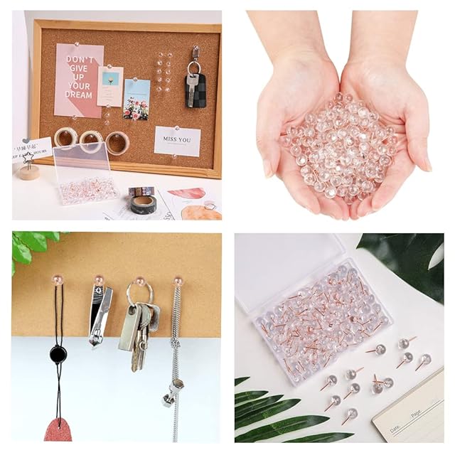 【クリア画びょう】透明色の玉とローズゴールドスチールの針の組み合わせで、可愛くておしゃれな押しピンです。自宅でもオフィスでも使えます。
