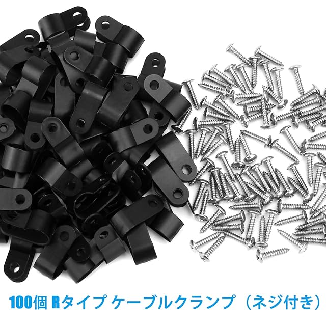 Aroidful Rタイプ ケーブルクランプ 100個入り ネジ付き ケーブルクリップ 直径10.4mm コードクランプ R型 壁 固定 コードクリップ ナイロン 黒