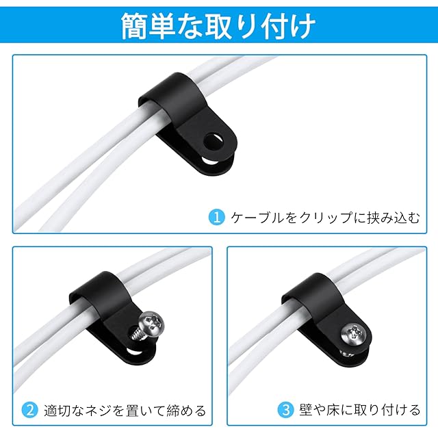 【ネジ付属】ネジ付きでケーブルが緩むのを防ぎます。取り付けと取り外しが簡単で、3ステップで完了します。ケーブルの直径に応じて、1本または1本以上のケーブルを固定することができます。