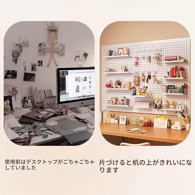 【無限のカスタマイズ収納】 無数の穴配置でフック位置を自由に調整可能。工具・アクセサリー・文具から小型グッズまで、用途に応じてレイアウトを自在に変更。立体収納でスペース効率を大化します。