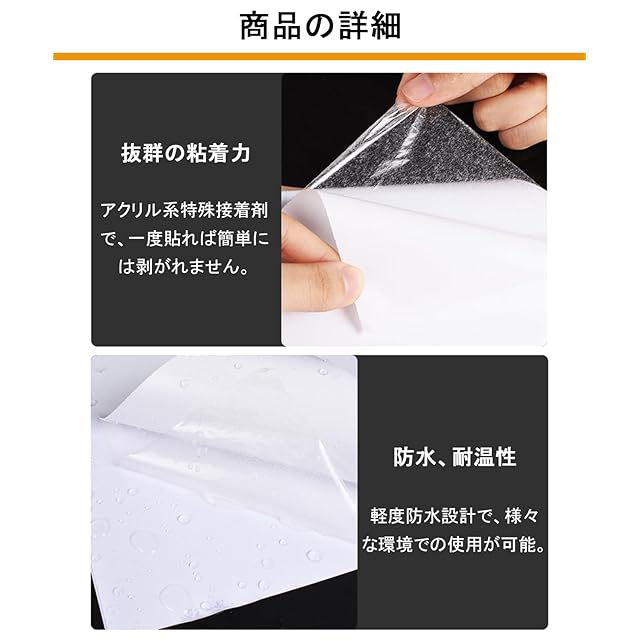 【透明で目立たない、美しい仕上がり】完全透明基材、0.1mm超薄型で、ガラスやアクリルなどの透明素材もシームレスに接着。