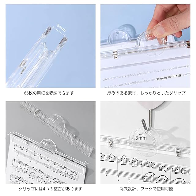 【シンプルなデザイン】オフィスでの使用に適した透明なカラーデザイン、ハンドルの円形デザインは接触面が大きく、クリップを開けやすく、ハンドルにラベルを付けることができます